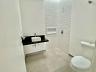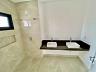 - Banheiros com tampos em mármore travertino e cubas de sobrepor;